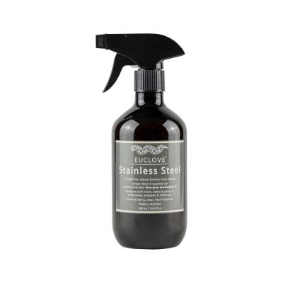 Euclove Stainless Steel cleaner is a unique formulation of powerful pure essential oils that leaves a clean, streak-free finish on all your Stainless-Steel appliances and surfaces. All of our essential oils are 100% pure, 100% natural and sourced from the best that Australia and India have to offer. Our Stainless-Steel product has the beautiful Australian blue gum eucalyptus that has its own natural antibacterial and antiseptic properties. Our pure essential oil-based formulations give your surfaces a unique, fresh, clean fragrance that will leave them smelling great and naturally clean. Easily removes dirt, stains & tough grime. Euclove is anti-mould, anti-bacterial, anti-septic and fights insects at the same time. It is 100% safe to use and free of harsh chemicals like Ammonia, D-Limonene, Bleach, Artificial Fragrance, Dyes & Colours, Sodium Lauryl-Laureth Sulphate (SLS), Parabens and Propylene Glycol that are typically found in chemical cleaning products.
