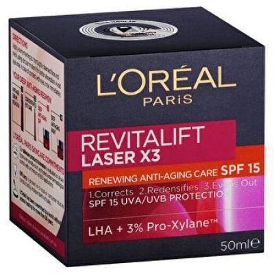 Discover a non-invasive alternative to cosmetic procedures with an anti-ageing solution: Revitalift Laser X3.This isn't a laser treatment but it is a powerful anti-ageing moisturiser that visibly corrects wrinkles, re-densifies your skin and evens out complexion. Revitalift Day Cream SPF 15 provides optimal protection against ageing. The formula is enriched with concentrated Pro-XylaneTM renowned for it's strong anti-wrinkle properties to stimulate and strengthen the support of the skin. Concentrated LHA, a powerful exfoliant that resurfaces the skin, evens out skin tone and improves texture. UVA/UVB filters in the SPF 15 broad spectrum sunscreen fight against the rays responsible for premature skin ageing and helps prevent the formation of age spots.