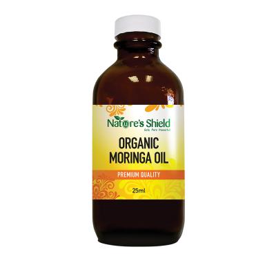Nature's Shield Cold-Pressed USDA certified organicMoringa Oil is a superfine oil with a broad range of nutrients and afresh green aroma. Offering benefits for health, skin and hair, it canbe used on its own for skin and hair needs or blended with otheringredients for specialty treatments. It can also be taken withfood/drinks (up to 1 teaspoon) as a nutrient source.