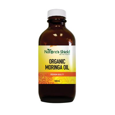 Nature's Shield Cold-Pressed USDA certified organic Moringa Oil is a superfine oil with a broad range of nutrients and a fresh green aroma. Offering benefits for health, skin and hair, it can be used on its own for skin and hair needs or blended with other ingredients for specialty treatments. It can also be taken with food/drinks (up to 1 teaspoon) as a nutrient source.