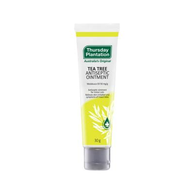 Thursday Plantation’s Tea Tree Antiseptic Ointment for minor cuts & abrasions relieves skin irritations and symptoms of insect bites & stings.