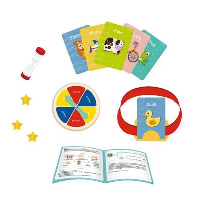 "Learning & Developmental Activity & Educational Preschool Toy - Guess What Educational Game for Kids Guess What is not only for fun, but also for education. Kids can demonstrate their deductive reasoning ability through simple questions and answers. Set up - Shuffle the cards. Place the card and turntable in the center of the table. - Starting from the youngest player, take turns clockwise. Play - The player who gets the content on card need to wear a headband. - Deal each player 3 coins. - Turn the hourglass upside down, when the time is over, its next player's turn. - Draw a card, the player with a headband can't peek at the content. - Spin the turntable. When the pointer stops, perform/quiz/describe what is on card. End The player who gets most coins, win! Age Recommendation: 3 Years + Content: Playing Card x 62, Accessories x 33, Instruction Booklet x 1"