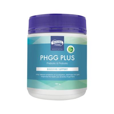 Wonder Foods PHGG Plus contains the prebiotic Partially Hydrolysed Guar Gum (Sunfiber) with the probiotic Bacillus Coagulans MTCC 5856 (Lactospore). Lactospore is a beneficial probiotic strain which has been shown through human studies to significantly decrease the symptoms of IBS. This product is a synergistic blend of a prebiotic and probiotic, which improves the health and diversity of gut flora. It promotes healthy bowel function and regularity and may reduce the symptoms of constipation, diarrhoea and gas, particularly in those with Irritable Bowel Syndrome.