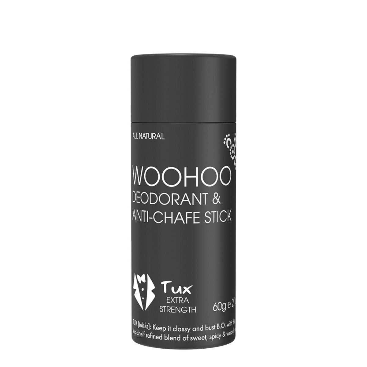 The 100% natural, 100% effective Woohoo Tux is all class. This extra strength, all natural deodorant will banish body odour in style, keeping you fresh all day and into the night. The bergamot and patchouli scent is a top-shelf blend of sweet, spicy and woody notes. Debonair. Suave. Charming. Watch out, this one will sweep you off your feet.